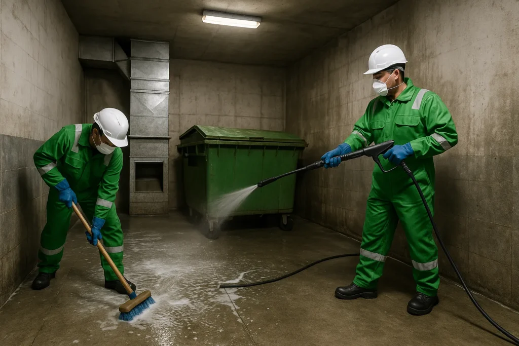 Así garantizamos ductos y salas de basura impecables, sin olores y con estándar sanitario.